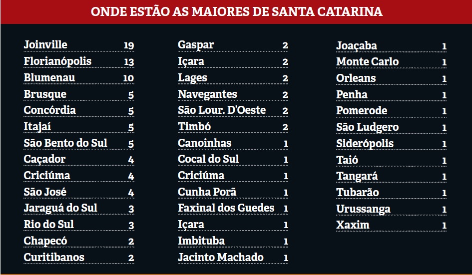 Quanto à representatividade dos Estados entre as 500 Maiores do Sul, Santa Catarina segue distante do Paraná e do Rio Grande do Sul. O número de empresas catarinenses caiu de 124 para 116. Nesse quesito, os gaúchos seguem em alta, com 202 empresas e ainda à frente do Paraná. Ano após ano, porém, a diferença pró-Rio Grande do Sul diminui: era de 26 companhias em 2012; agora é de 20.